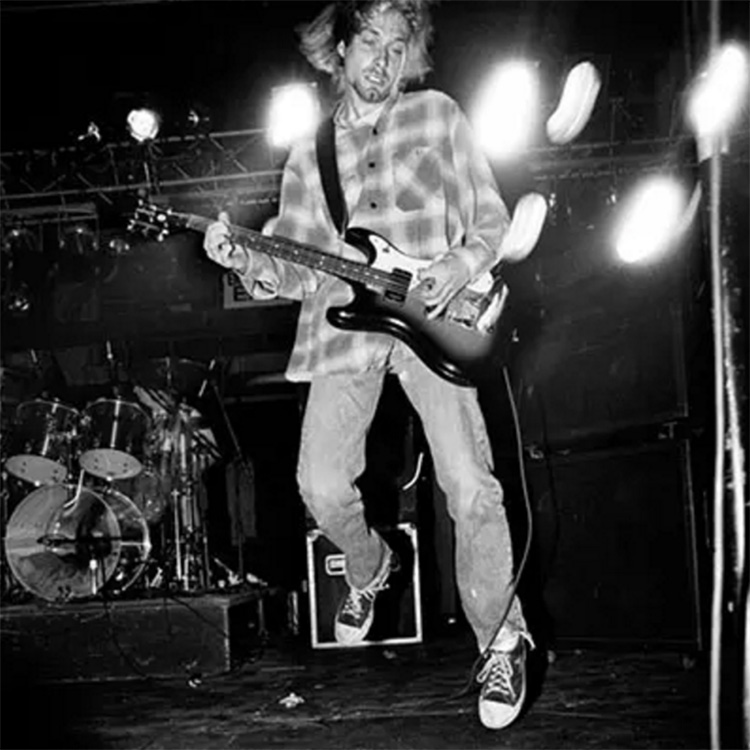 “这张照片中,Kurt正在做一个Pete Townshend式的跳跃。我不知道这张照片中他是在向上跳还是在往下落。但是我爱他脸上的笑容,天使一般,很放松,完全自然而然。然后在他自杀之后,这张照片当然就有了更深的含义,仿佛表现了他升向天堂的场景。”
