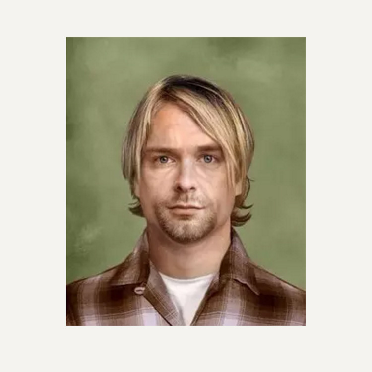 猜想:(50岁)步入中年的Kurt会继续留着一把乱蓬蓬的金发、穿着宽身格子衬衫。他早已和Courtney Love分手,成功戒毒,在某处过着隐居生活。