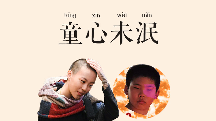 原意:通“童心未泯”,形容成年人还有着孩子的天真。
